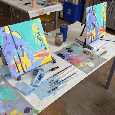 Throughout the day, we’ll experiment with mixing luminous blues and vibrant yellows, keeping colours clean, and using confident, textured brushwork to build depth and atmosphere. Demonstrations will guide you through each stage of the process, and individual support will help you develop your own expressive style.