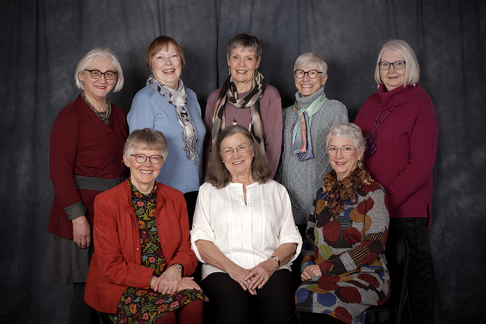 Above: The Octarine Women Artists’ Collective. Back row, L to R: Gail Root, Carol Hughes, Leslie Miles, Gail Brown, Anne Smith. Front row, L to R: Judy French, Kim Johnston, Dianne Kennedy-Cruttenden. Missing from portrait: Nancy Farrell