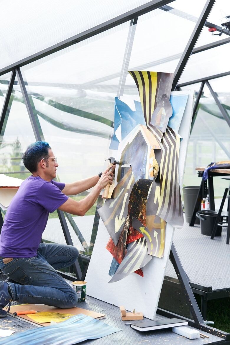 Travel and artist residencies have played an important role in developing his themes. He has developed new work during residencies at the Symposium in Baie-Saint-Paul, Quebec, The Banff Centre, and the Vermont Studio Center. In 2017 he began his arctic themes: he visited Baffin Island as part of CanadaC3, and in 2023 he explored Svalbard as part of The Arctic Circle residency.