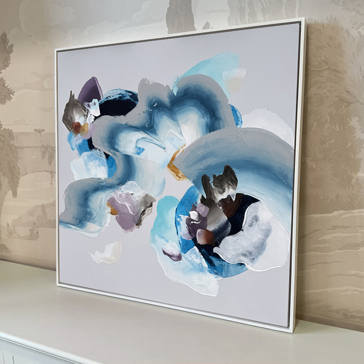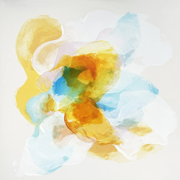 Acrylic on canvas, white wood frame (featured at the Elora Mill, in the solarium of the Granary Building) 48″ x 48″.