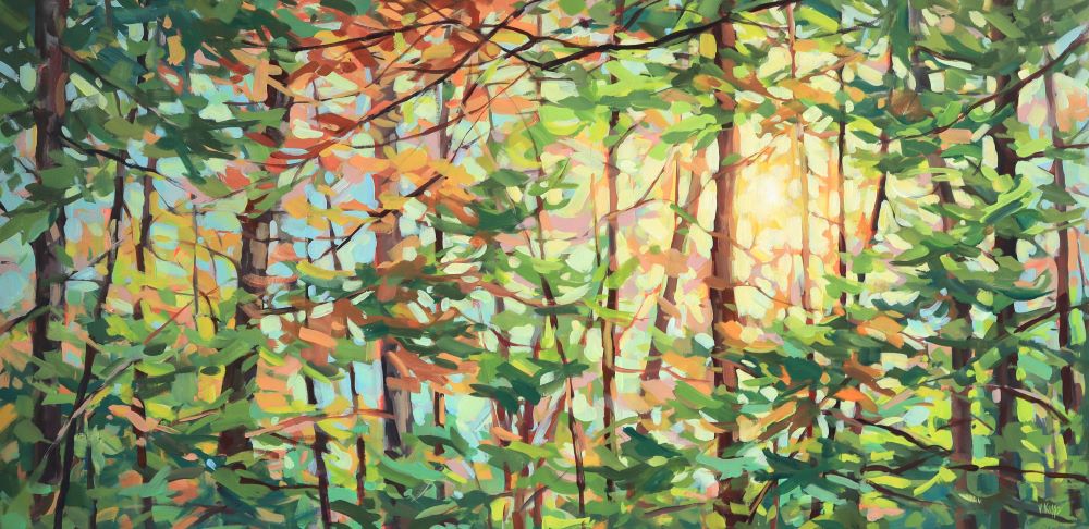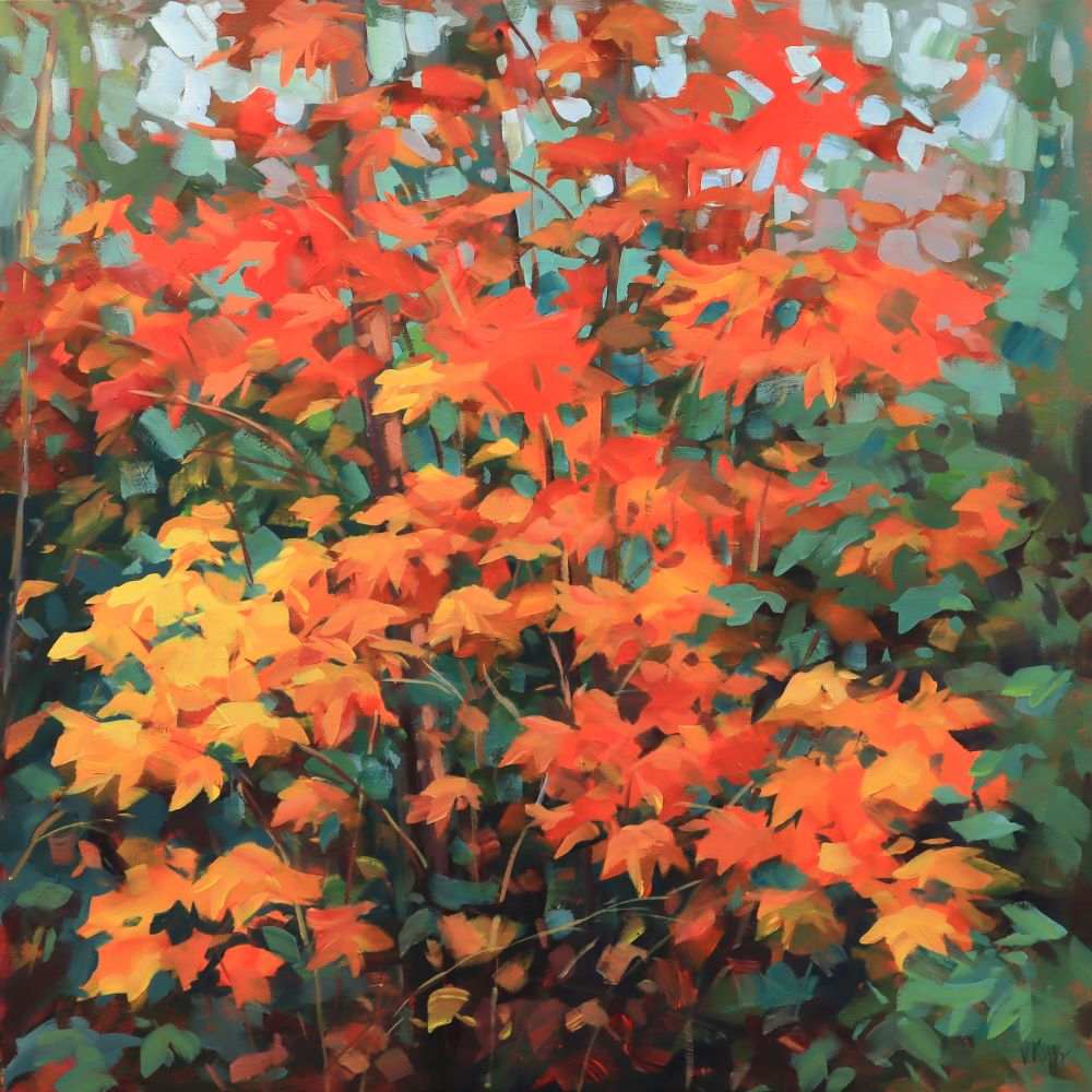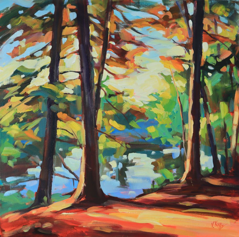 Russian Canadian artist Vera Kisseleva has been featured as a solo gallery exhibition artist here at the Elora Centre for the Arts, celebrating how the forest can harken our best memories, Artist Vera Kisseleva explores the essence of familiarity and its intangible and magical way of bringing us back to happy memories. “Sometimes I’m walking in nature and the way the light is filtering through the upper tree branches triggers a memory for me – usually it reminds me of camping with my family or that quiet peace that comes with the setting sun” says Kisseleva, a Russian-born Canadian artist now living and working in her studio in Fergus, Ontario. Kisseleva’s bold and vibrant paintings focus on trees and the changing seasons. “I am fascinated with the drastic differences between the Canadian seasons” she says. “Each season brings something extraordinary to our lives and affects our feelings, emotions and wellbeing”. The artist represents the seasons and hopes you will see glimpses from your own experiences and memories within her work. “Spring teaches us to hope, summer reminds us to be outside and feel alive, winter encourages us to slow down and reflect” says Kisseleva. “I believe that Autumn is the most spectacular time of year, the quiet whisper in the breeze, the rustle of dry leaves and the beautiful view of the reflection in an autumn lake – it evokes such nostalgia of our best and brightest memories, as summer comes to a close and a new chapter begins” she explains. Vera Kisseleva is an established award-winning artist best known for her paintings inspired by the Canadian landscape. She is also a member of the annual Elora Fergus Studio Tour and Elora Plein Air Festival. Her pieces are in collections all across the globe.